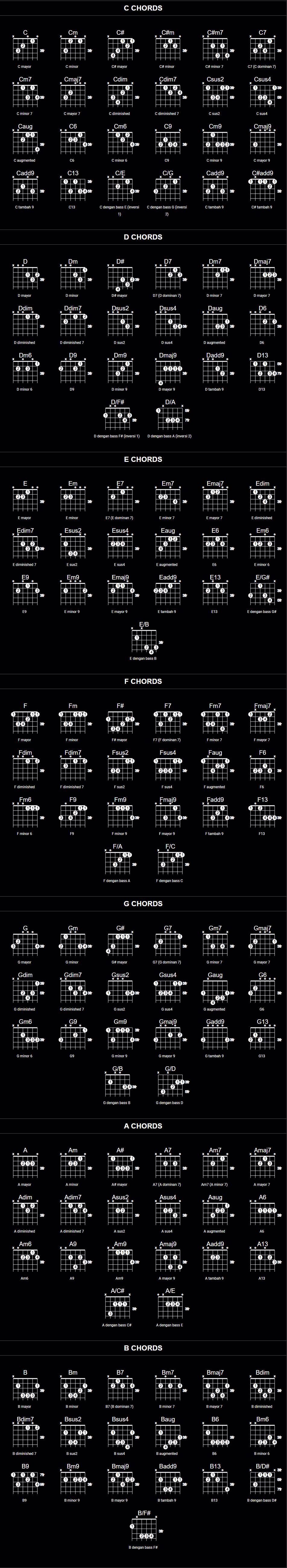 Kumpulan gambar chord dan kunci gitar beserta variasinya ini akan sangat membantu sobat yang sedang belajar bermain gitar.